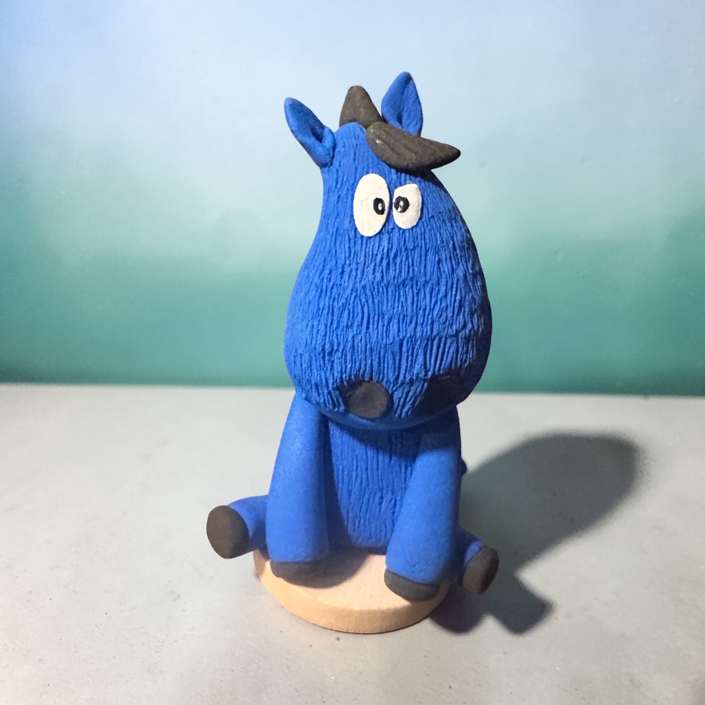 座る馬-置物-ブルー